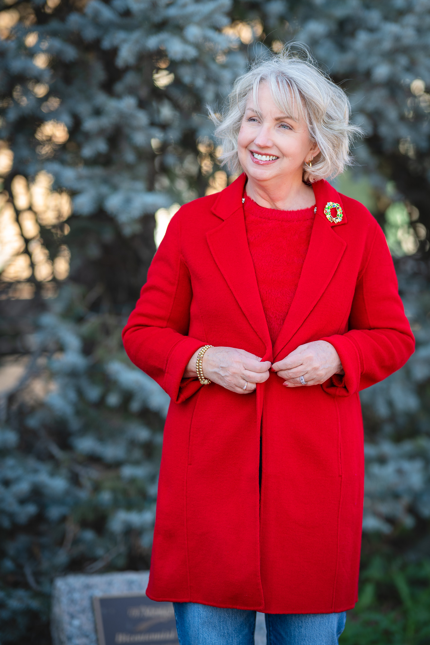 Oh my goodness, you look absolutely radiant in that raspberry jam henley sweater! Socks… recently I wore my socks in the same color as my shoe, and it just looked “wrong”. Then it hit home to me, of why you have the concept of making the sock a statement of its own. Lesson learned!