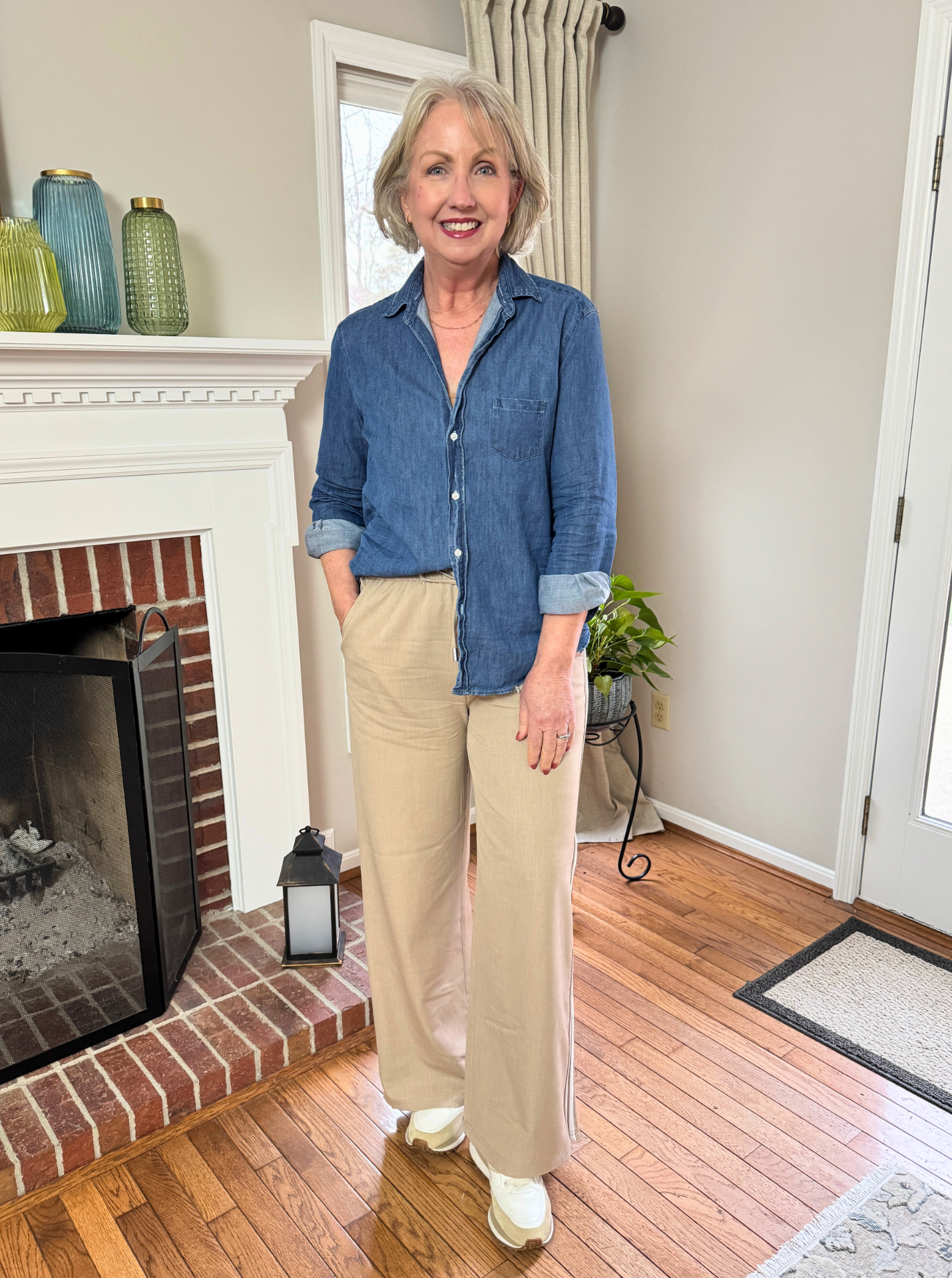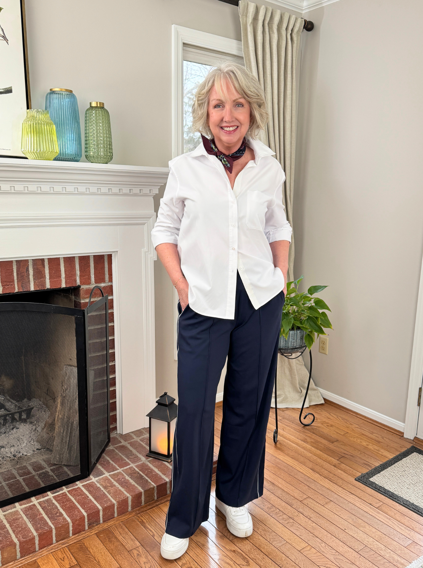 How I love these track pants, let me count the ways! They come in a wide range of sizes, a variety of colors and they feel substantial but comfortable and classy. And just through TODAY, get 25% off plus an extra 10% off with code EXTRA10. Track pants like these are VERY on trend for 2026, but I suggest wearing them multiple ways, including dressed up with a button-up shirt and/or blazer.