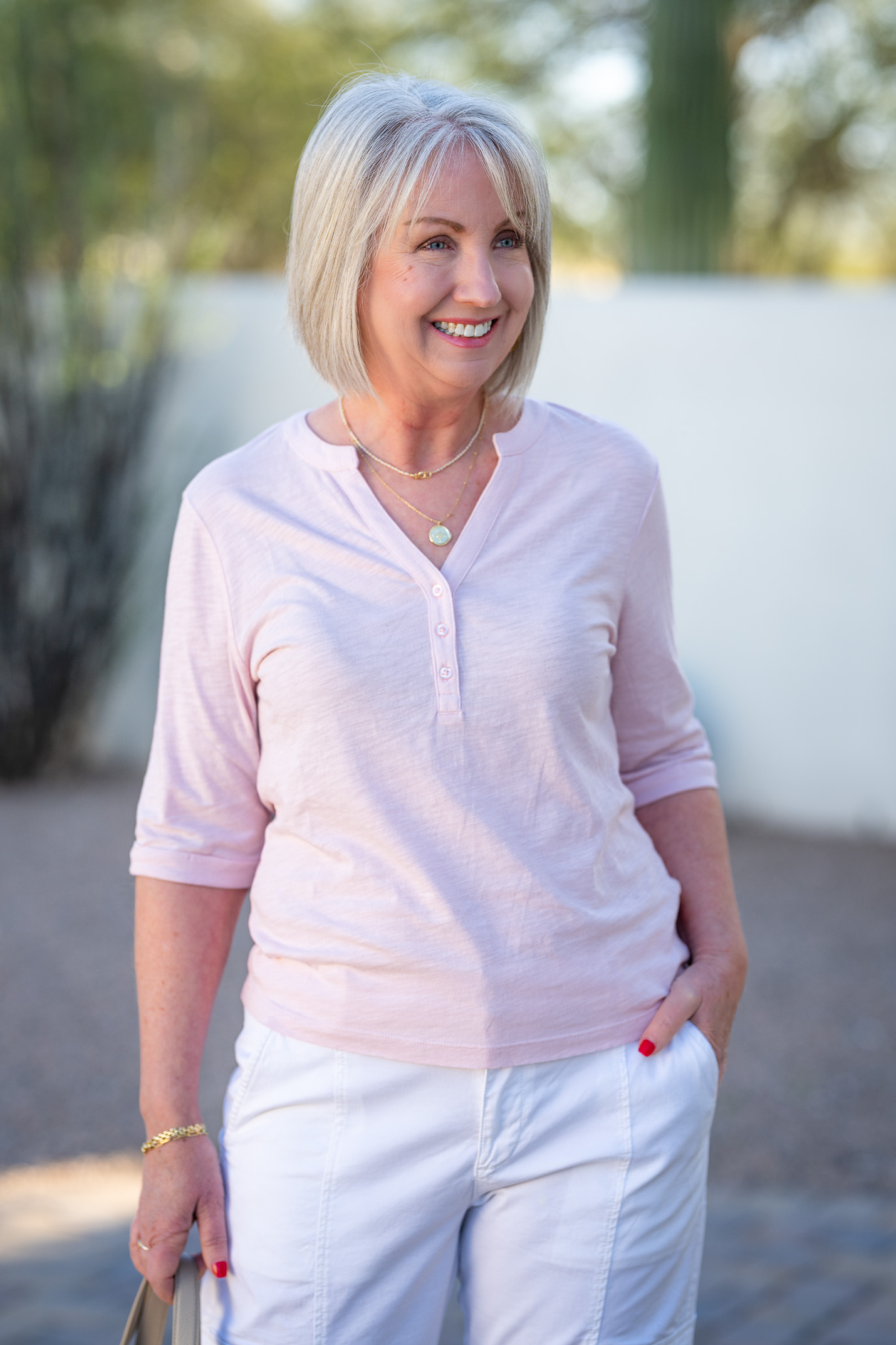 I never notice my shortage of simple cotton or cotton blend tops until I start packing for a trip. I think that’s because I like to pack very simple pairings for vacations. I don’t have time for fussy tops or complicated matching. Instead I want to pack simple, solid colored tops that can pair easily with multiple bottoms.