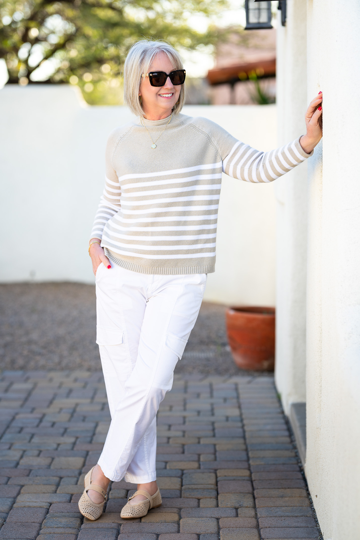 Just returned home from two weeks in Italy. My cool weather travel clothes were from Talbots, Madewell, and Athleta. Everything mixed and matched. Next up, is a June trip to Cape Cod. I just might purchase the cute beach sweater!