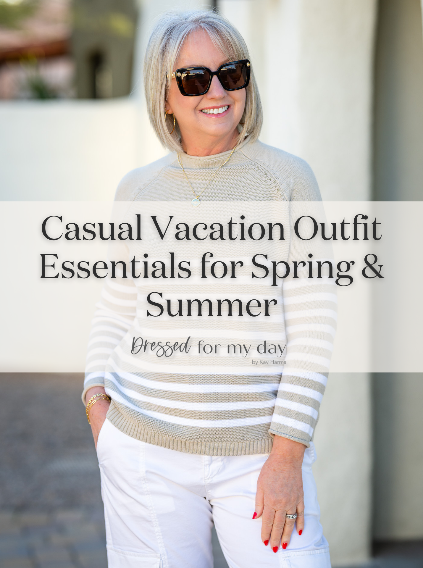 We had a gloriously beautiful and warm spring weekend, so that has me looking forward to sunny vacations. Hahaha! Maybe I’m getting ahead of myself, but you can never start planning for those warm weather vacations too early in my book. Whether you’re road-tripping to the coast later this month, anticipating time on the lake in May or fleeing to the mountains in July, I’ve got some casual vacation outfit essentials you’ll need for those spring and summer getaways.