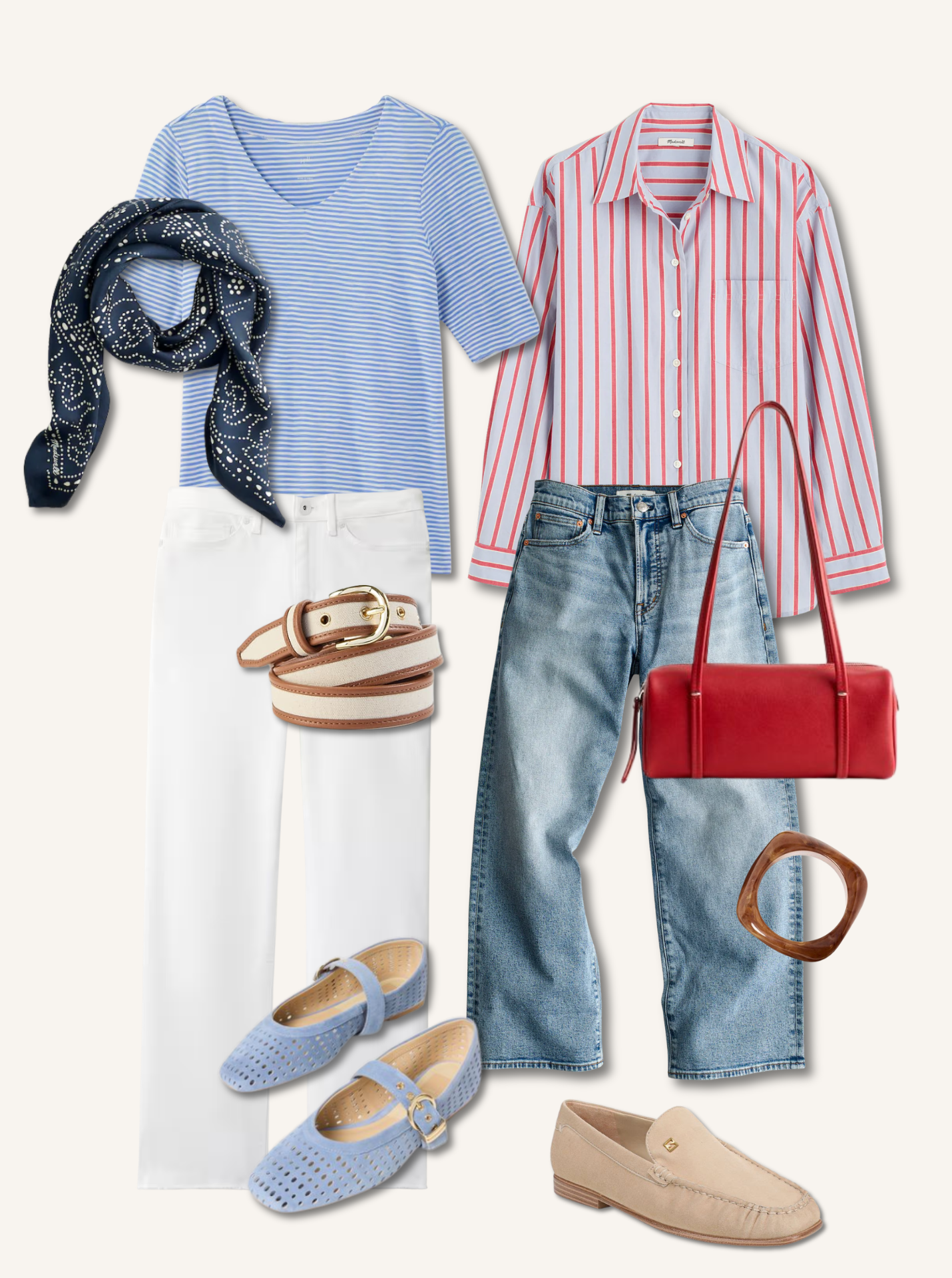Just yesterday I got in the striped button down shirt from Madewell above. The 100% cotton fabric is breezy and light, and the colors are lighthearted but familiar. I envision wearing it with white jeans and a denim jacket from my closet. I’ll add soft hued loafers and simple jewelry.
