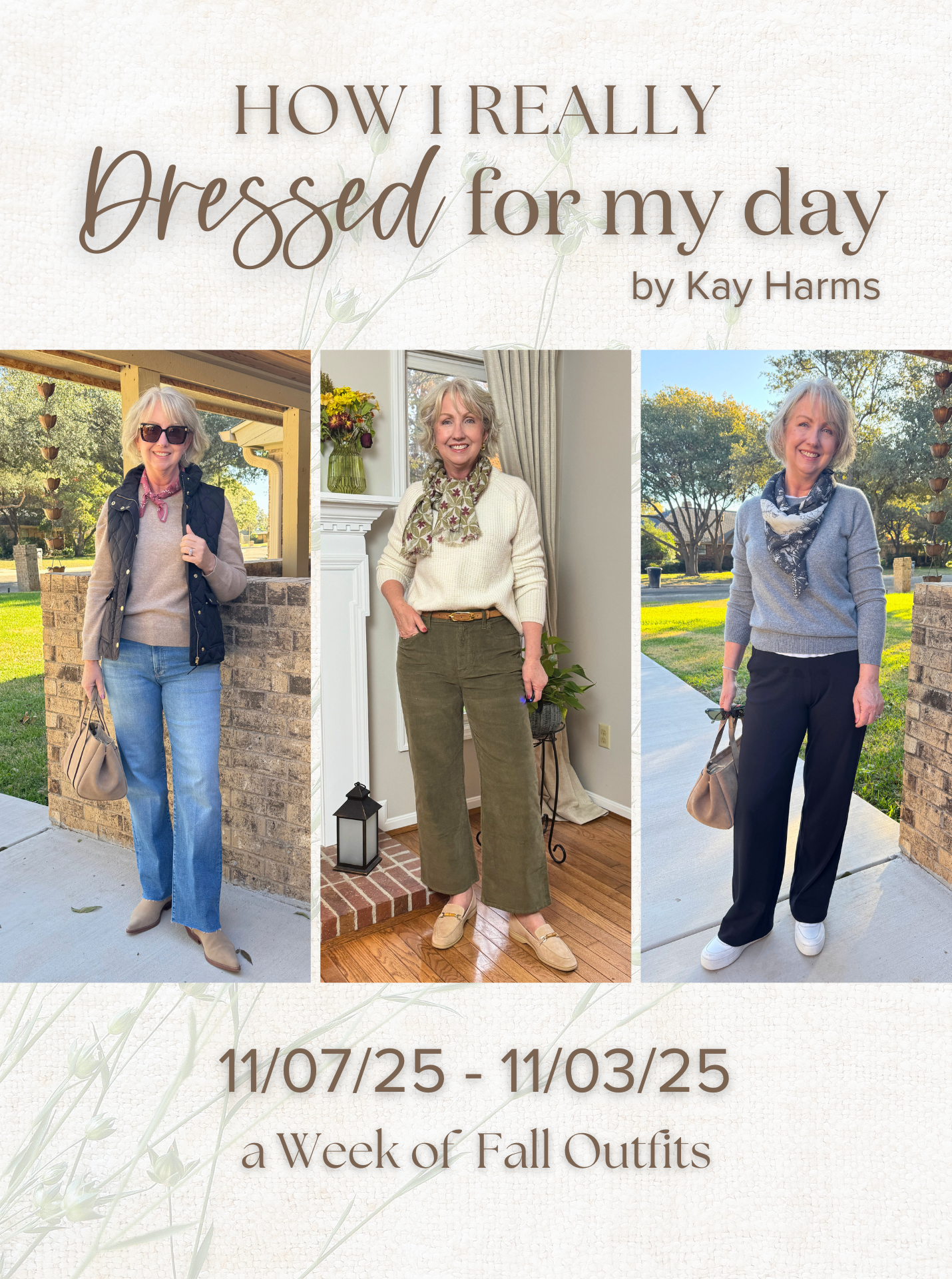 These are all lovely outfits Kay. I’m loving all the scarves, especially the square and triangle ones that are available now. I hope to see more outfits styled with scarves as they seem to elevate even a basic outfit.