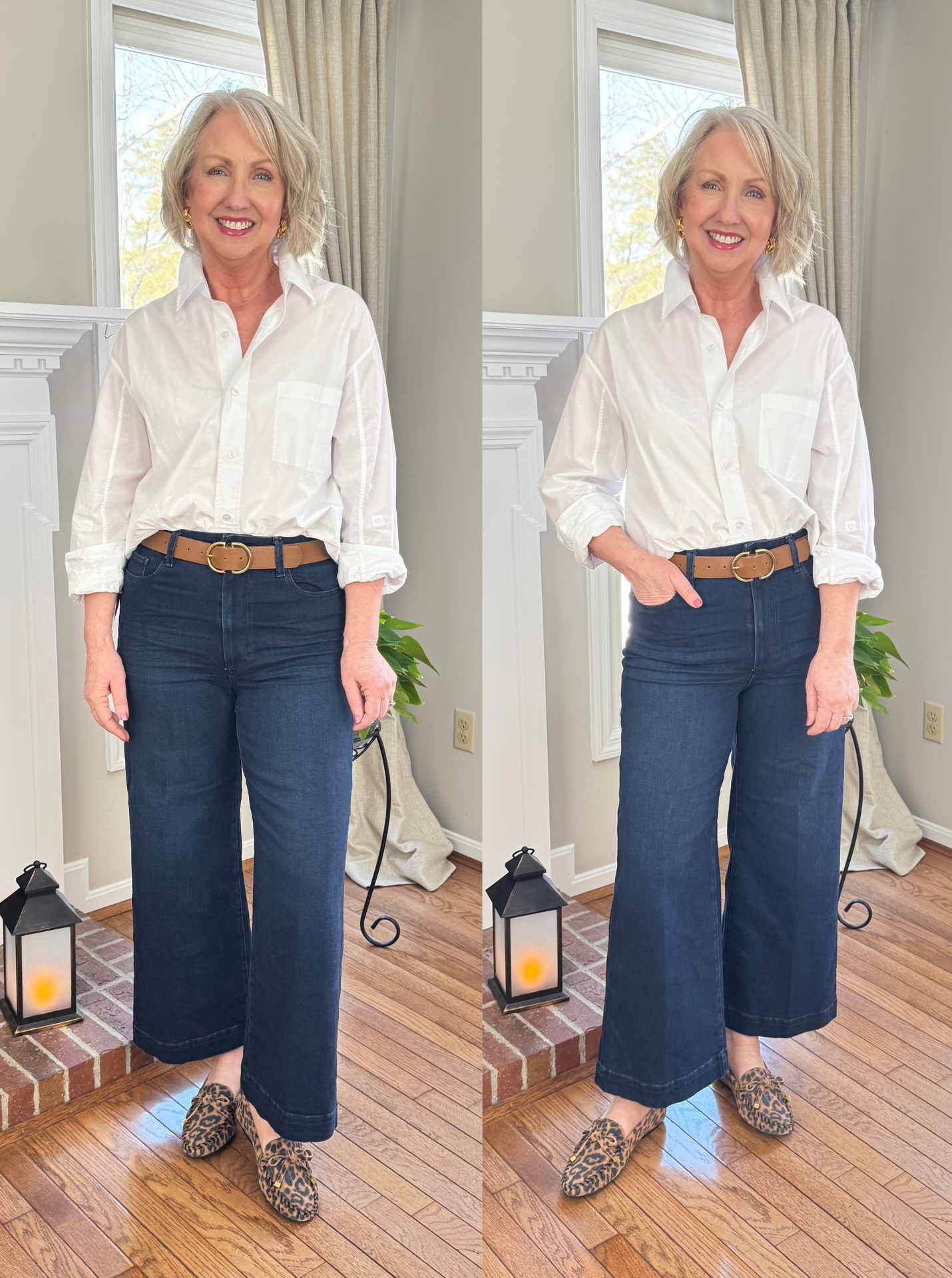I hope your husband is getting over his illness. Enjoy seeing what you wore. I like the leopard shoes with the crop jeans.