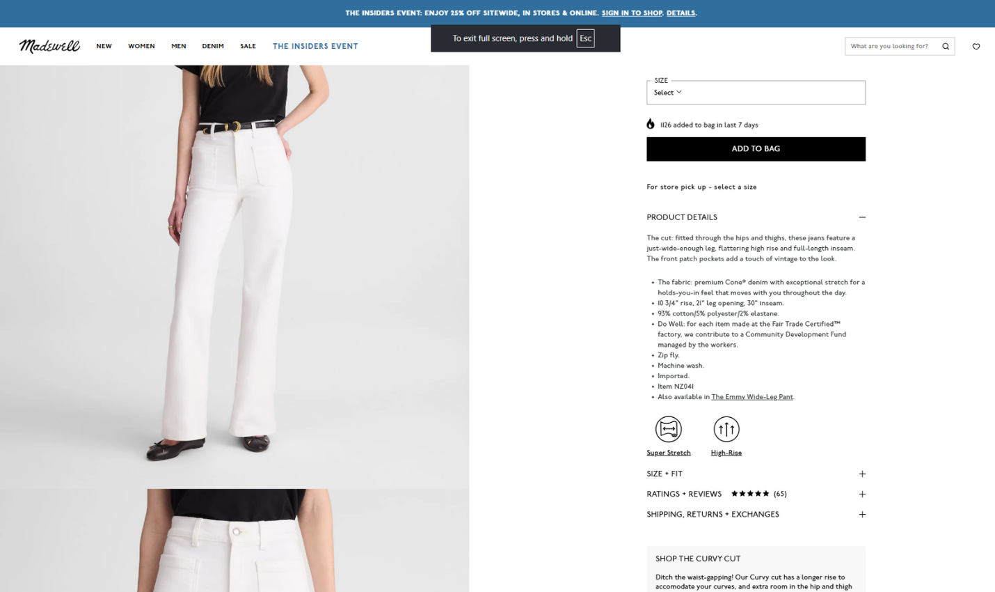 When it comes to purchasing the best wide leg white jeans, fabric density is key. They’re just not as forgiving as blue or black jeans, and the white denim somehow manages to expose all of our lumps, bumps and bulges, ahem. Of course, it’s easier to check the fabric density if you’re shopping in store. But it’s absolutely possible to get a good feel for the fabric online, too. Here’s how I do it.