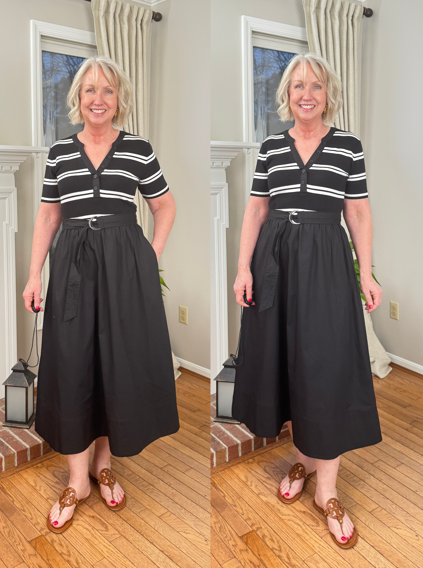 This black and white Henley midi dress is new from Evereve. I think we can expect to see a lot of these mixed media dresses again. They were very popular last year. This one comes in at a sweet price, compared to others I’ve seen. It fits nicely true to size. The cloth belt is removable and I might swap in a different one, but I love this cool, easy-breezy dress.