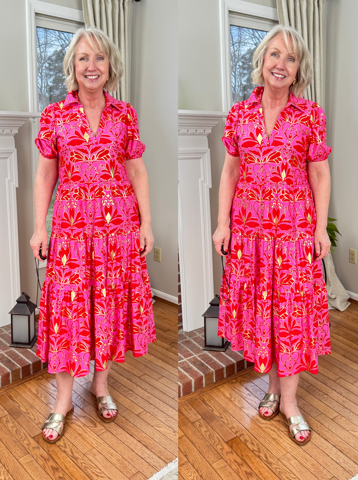 The Libby dress is my other favorite silhouette at Jude Connally. Of course, it’s also made in their signature Jude cloth, which is silky soft and cool on the skin. This one does feature just a little bit of the gold gilding in the fabric, too. I think it’s a very flattering silhouette.