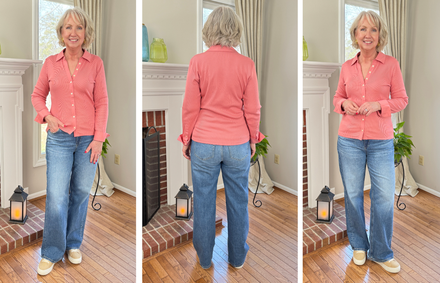 IMPORTANT: Just for reference, I’m 5’8″ and weigh about 160 pounds. I have even proportions and an hourglass shape. I generally wear a size misses 10, a size 30 in jeans or a medium. You can assume that is the size I’m showing unless I tell you otherwise. I encourage you to focus on the individual pieces I’m sharing more than the outfits. I’m putting things together so that I can show you as many new spring arrivals as possible, so these outfits are not necessarily styled the way I would wear them (although some are).