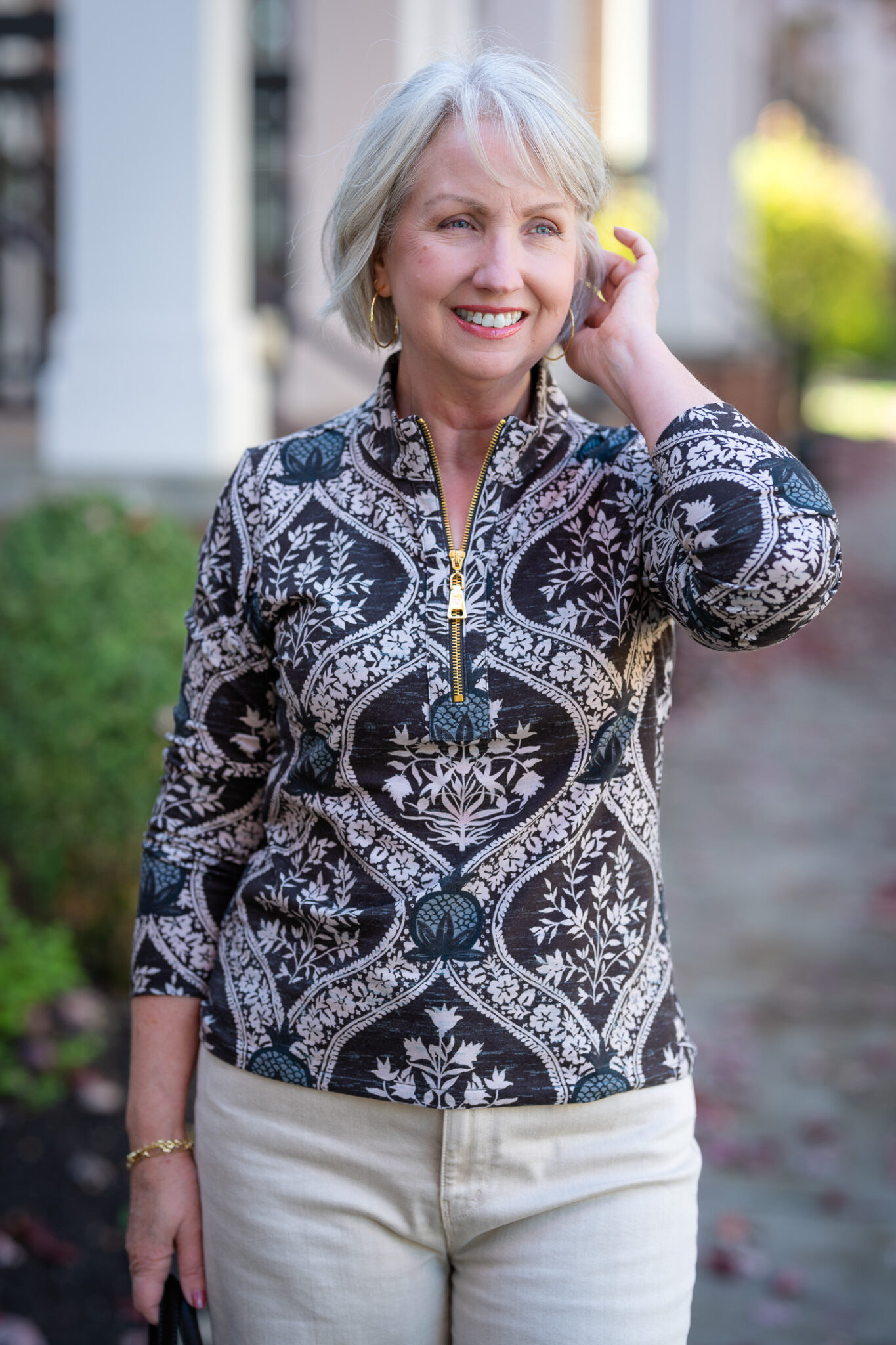 Truth be told, this half zip top wasn’t really a purchase. Like a lot of my clothes this year, this beautiful, comfortable half zip top from Spartina449 was gifted to me. But I did bring it into my wardrobe with the intention of wearing it.