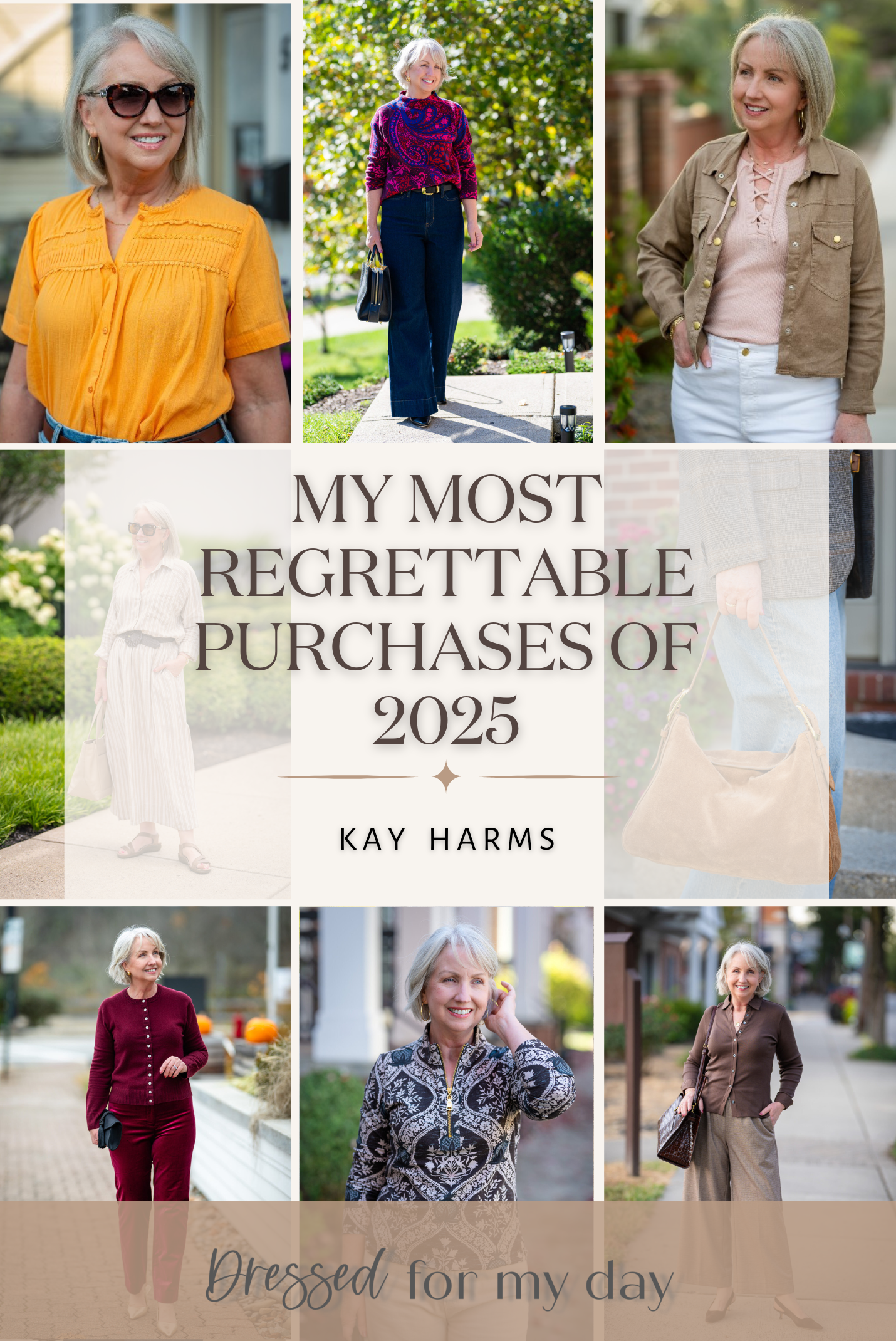 Nothing like closing out the year with a blog post on regrettable fashion purchases, lol! But I certainly don’t want to take these regrets with me into the new year, so I’d rather share them today. On January 1 I like to turn over a new leaf. Are you like that? So let’s plow through these most regrettable fashion purchases in 2025 and I’ll share the lessons I learned from them along the way. Then you can let me know if you have anything hanging in your closet that didn’t work out for you, too.
