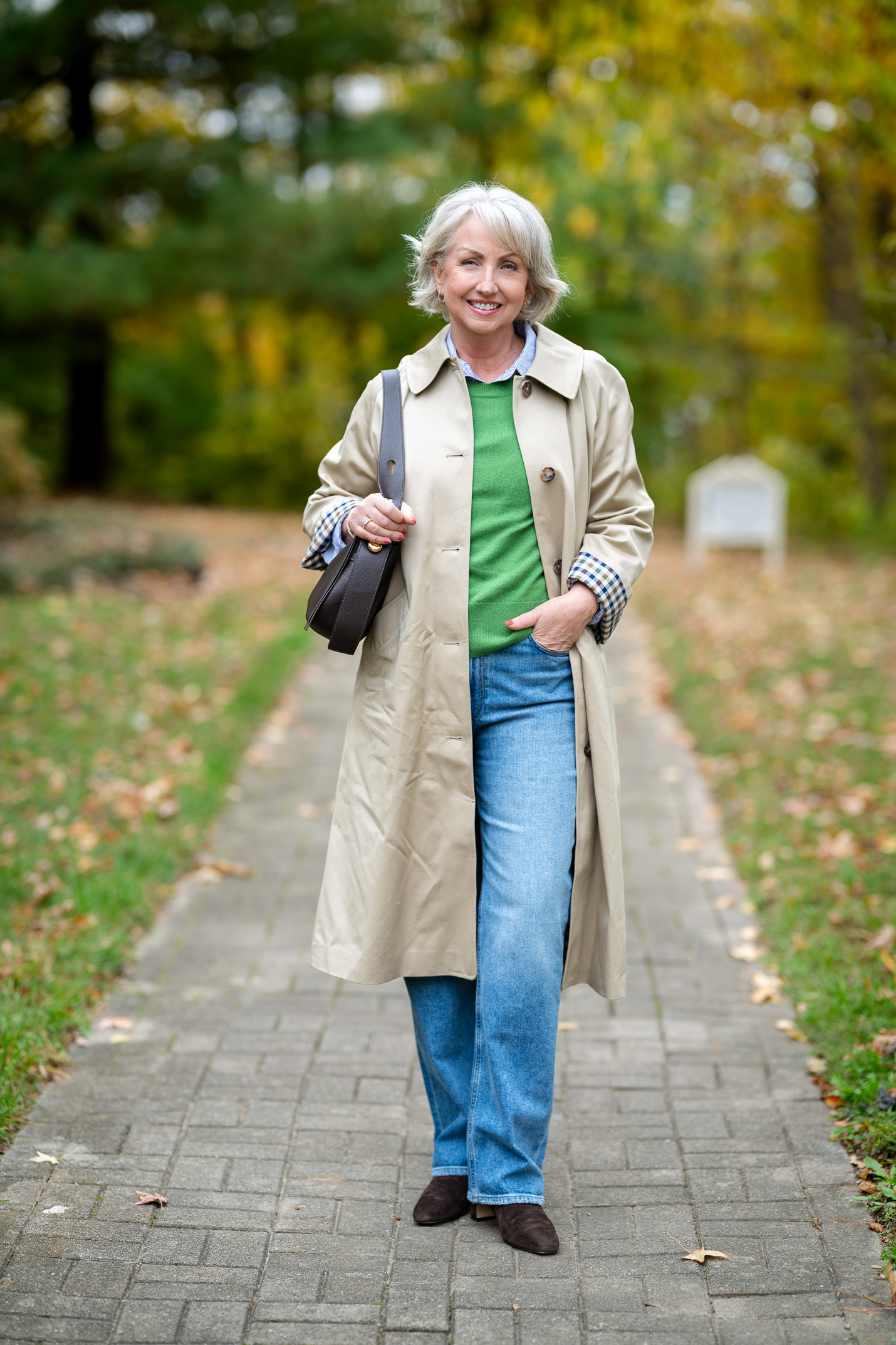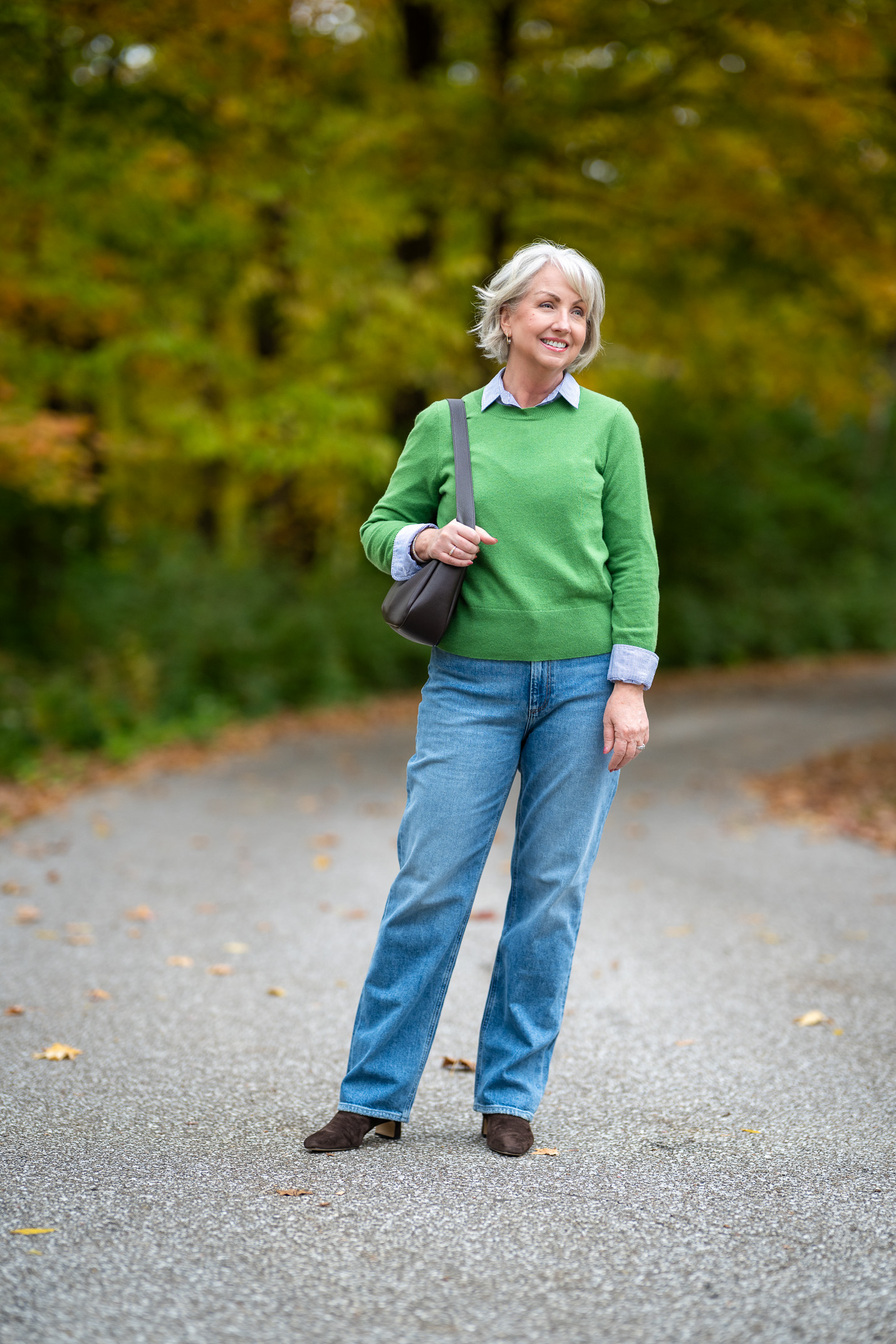 So I think earthy brown, new growth green, cheerful yellow, soft pinks, sky blues and stormy greys. The outfit I’m sharing here today makes me anticipate the fresh green buds we’ll soon see on trees and dotting the fields. But the pieces are still substantial and warm, layering on and off seamlessly.