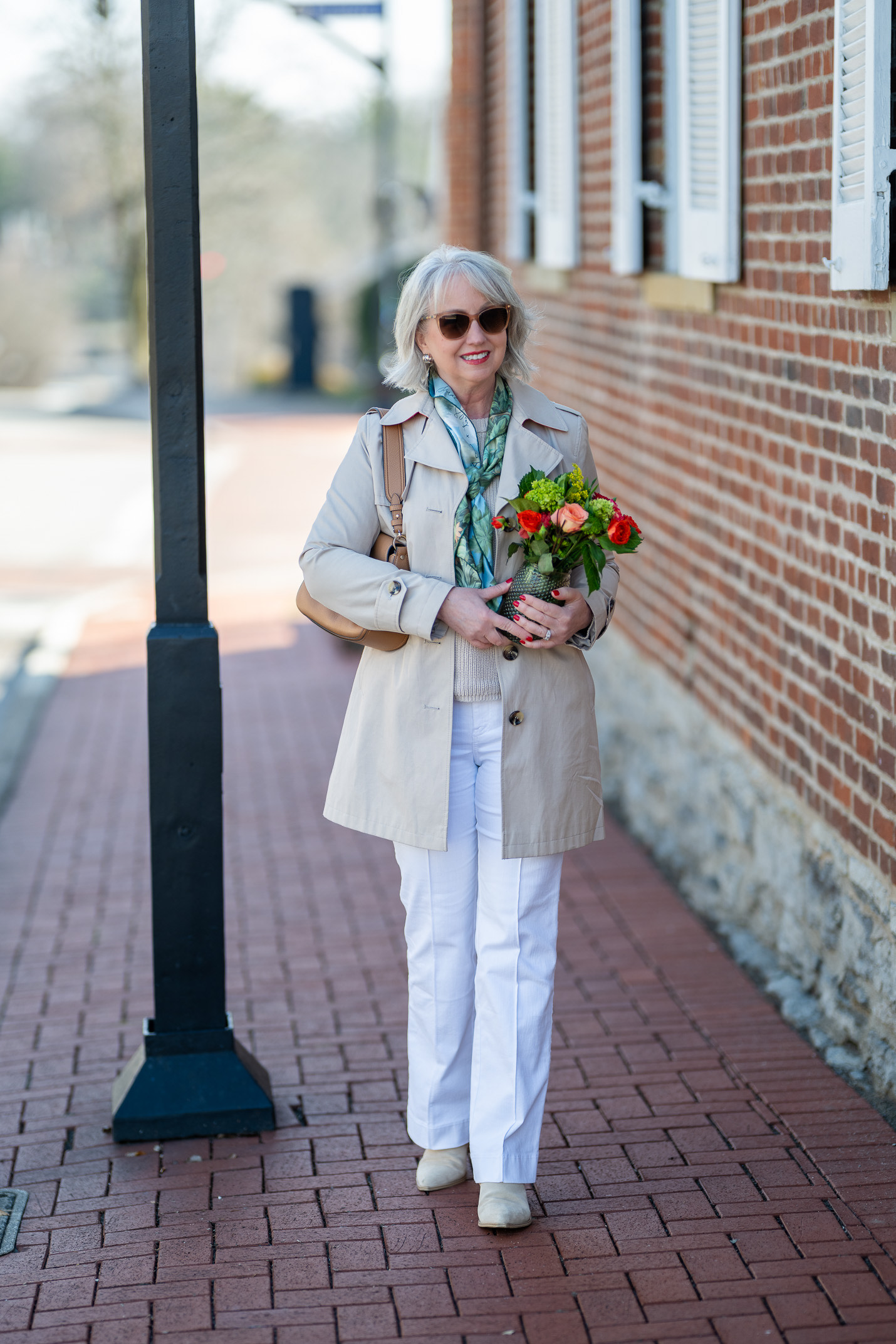 I have been looking for that unicorn one but haven’t yet. I can’t wear or don’t like to wear the darker warmer tone beiges as I’m greying now and wear cooler tones and don’t want double breasted. I need the longer style for dresses but want single breasted and lighter cream color that’s cool tone. Can’t find one. I also need to replace my below the hip one. It’s old and feels too small and same with my black one similar. I do love all your looks you posted. You look great.