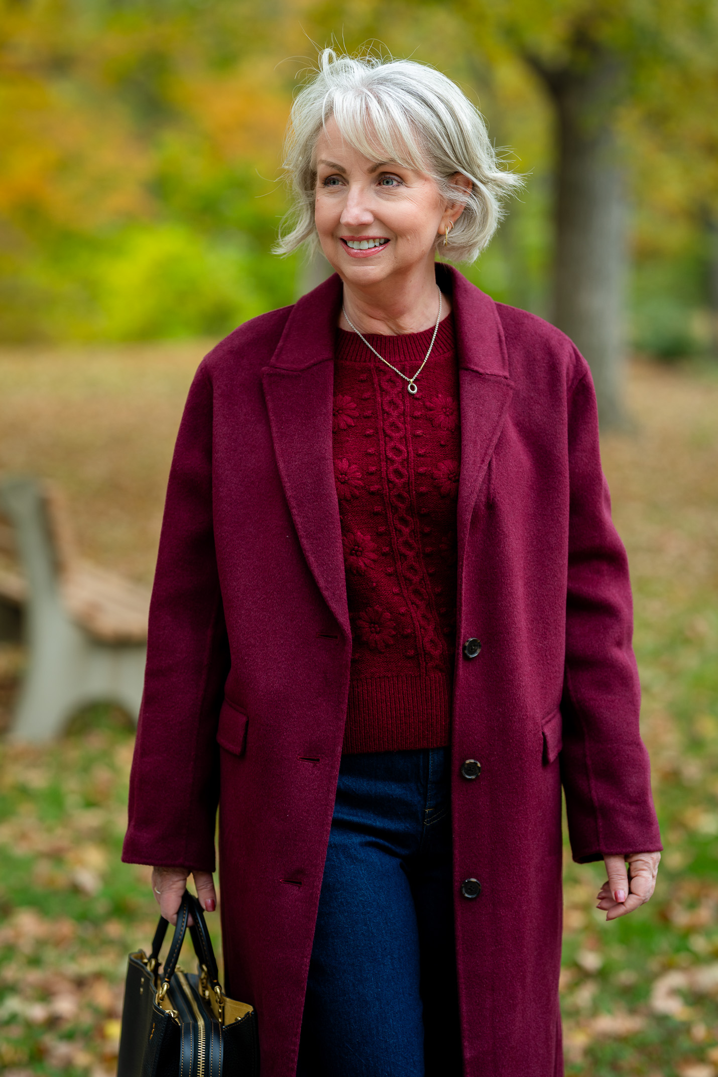 What a great, simple idea, yet one I never would have thought of planning, though I’m sure I’ve done it by accident. I run warm, so my coat is pretty much always open in stores, church, and other places where I keep it on. Your outfits with matching or near-matching coat and sweater colors look so striking and intentional! And I treated myself this year to several new coats in different colors. Time to make sure I have sweaters to match.