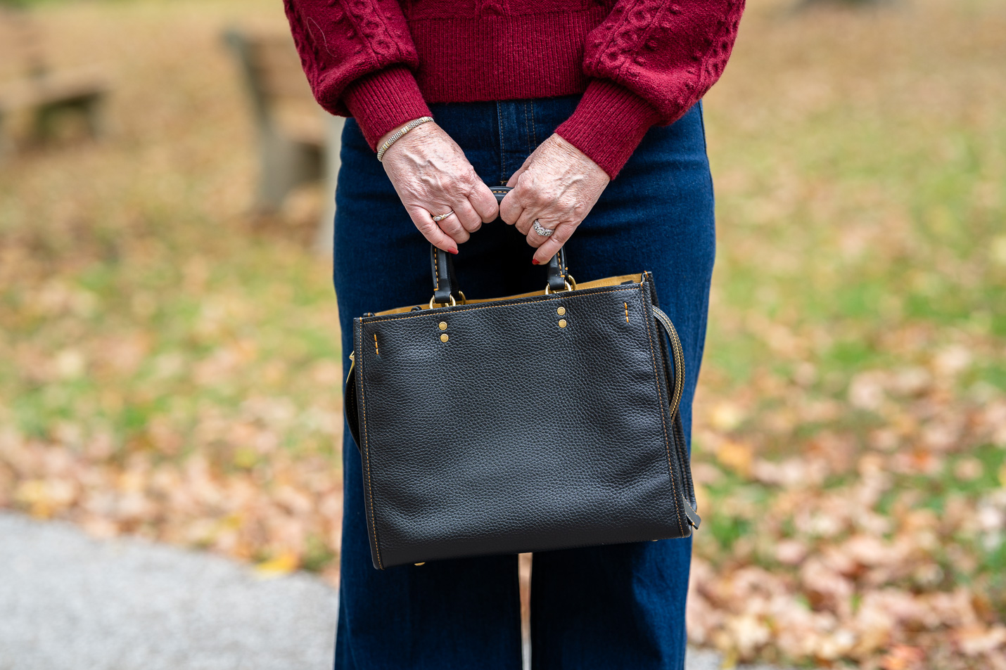 Because I had been gifted the beautiful Wilshire red top coat from J.Crew, I set out quickly to find a pullover sweater I could enjoy wearing under it. I landed on this luxe merlot embroidered sweater from Tuckernuck. I already had this inky burgundy cashmere cardigan, but if you love this style formula you know the more the merrier. The embroidered sweater is a thick, warm one, but it doesn’t contain any wool. So if you have a wool sensitivity but need warm clothing for winter, this sweater is a nice one. It fits true to size.