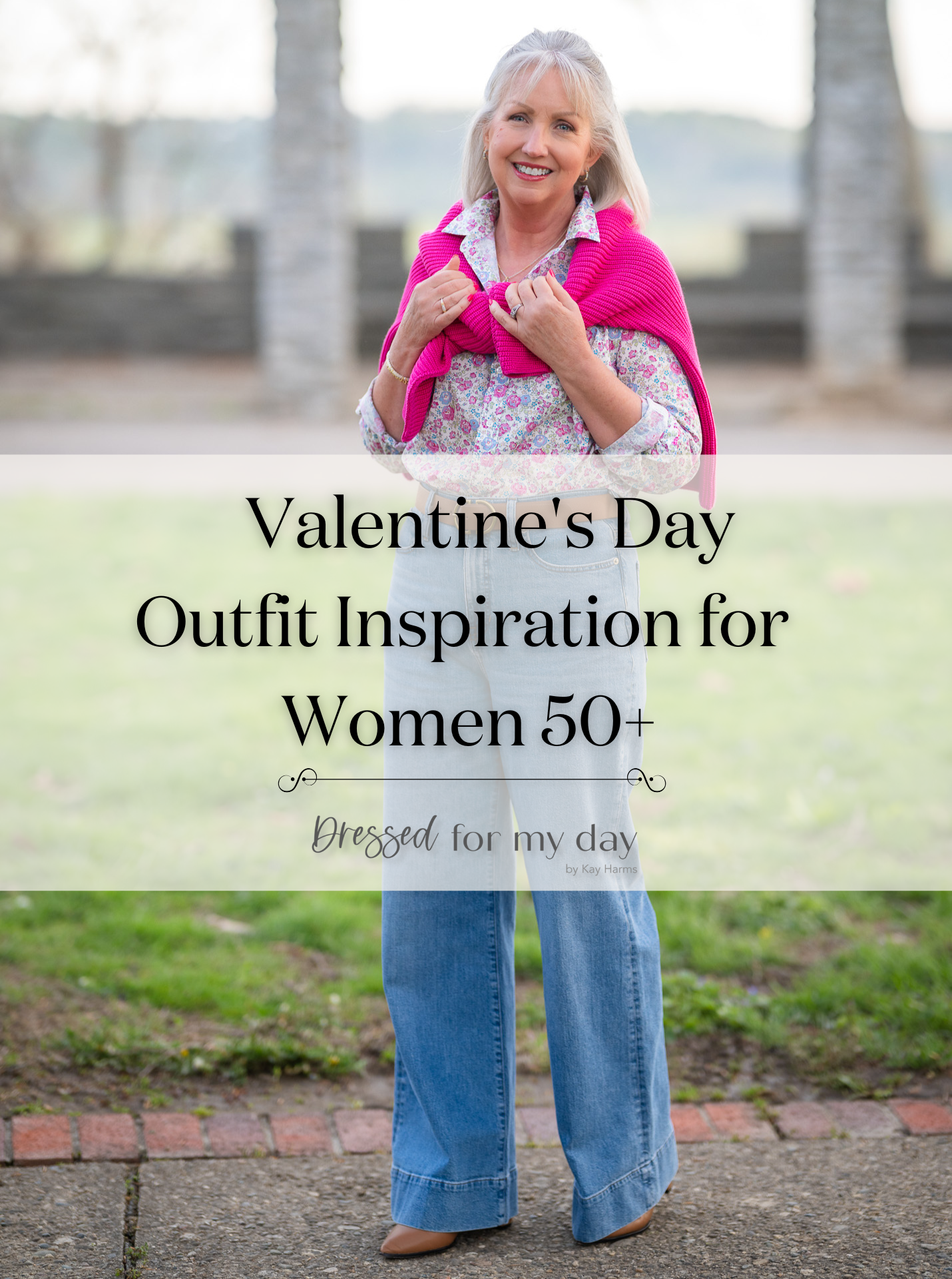 Do you enjoy dressing up for Valentine’s Day? Whether you squeeze in a Galentine’s coffee with girlfriends, treat the grandkids to ice cream in the afternoon or do something more romantic with your honey, it can be uplifting and fun to wear something a little special on this Hallmark holiday. I have several everyday, casual looks that I’ve created for you to consider as well as a couple of dressier outfits that would be perfect for a real Valentine’s date night. Let’s check out some Valentine’s Day outfit inspiration for women over 50.