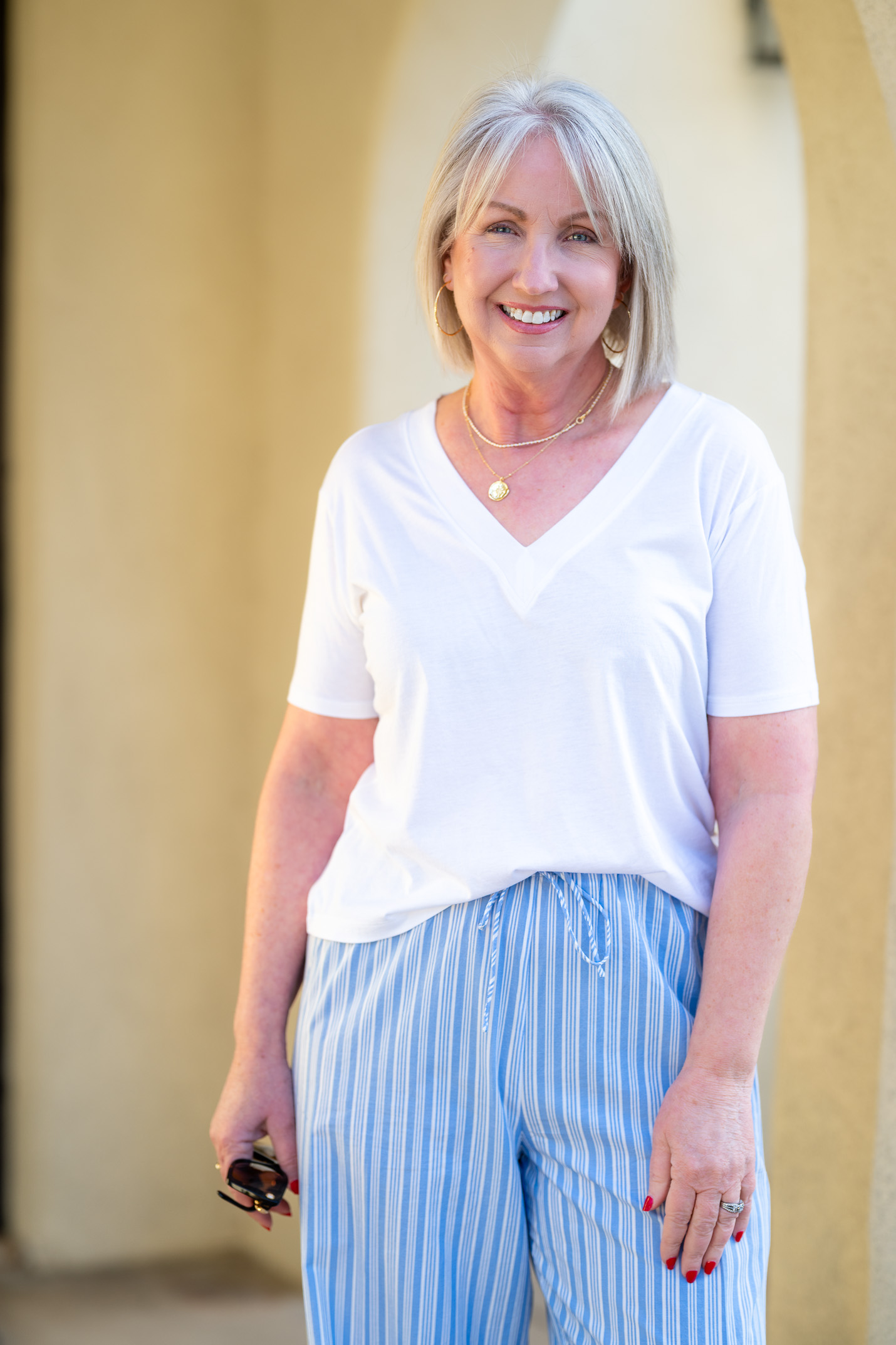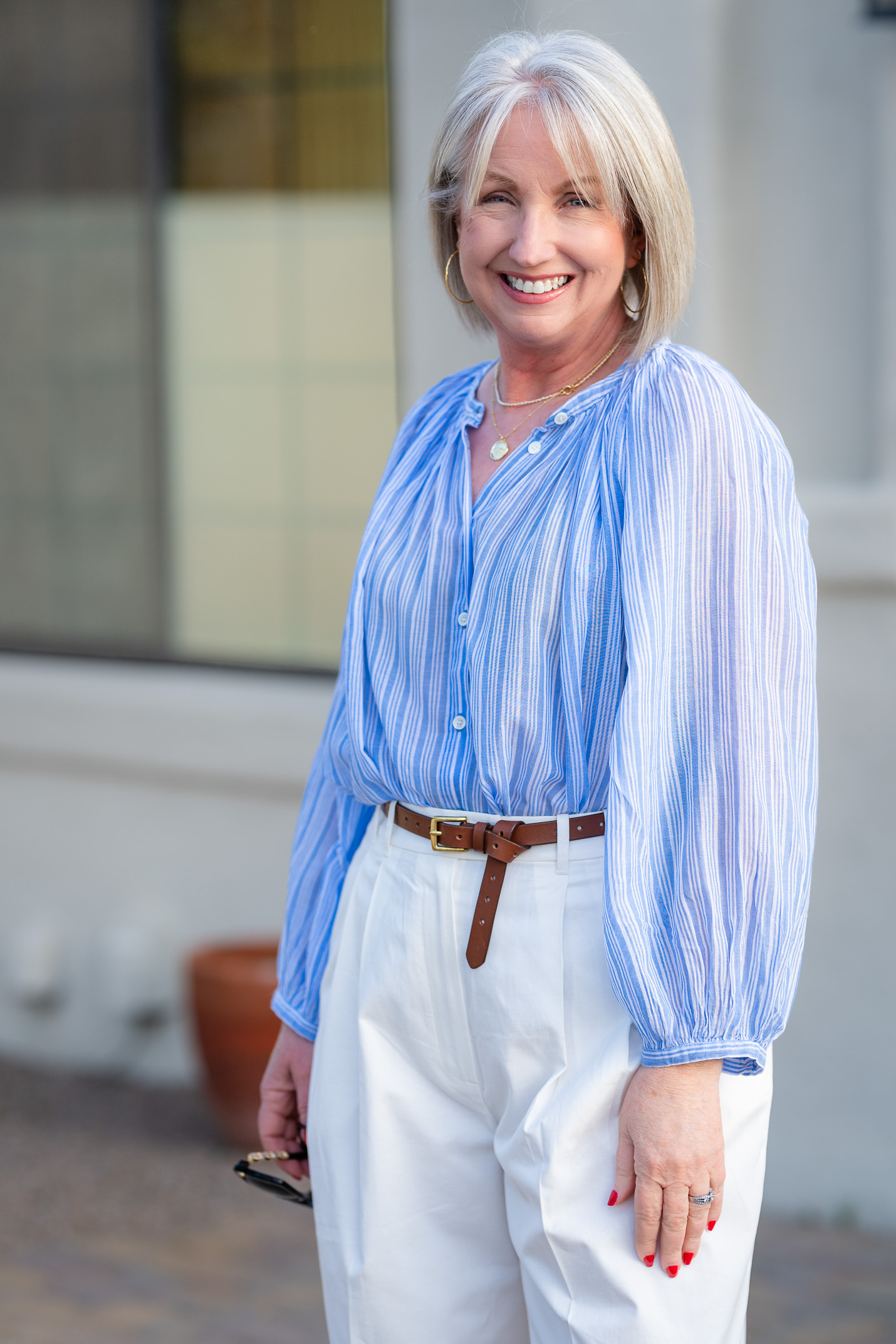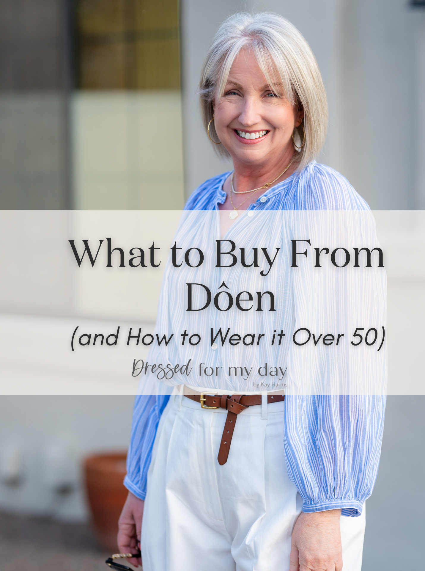 Recently I’ve noticed Dôen – a brand known for their soft, flowy and romantic style – experiencing a huge rise in popularity, specifically among women over 50. While it’s tempting to cling to the strictly classic styles that many of us grew up with and feel safe wearing, it can be fun to tiptoe into some of the emerging brands for a little variety and an updated look. I’d like to show you a few things I recently purchased from this California based brand, but along the way I’ll also share a few thoughts on what to buy from Dôen and how to wear it over 50.